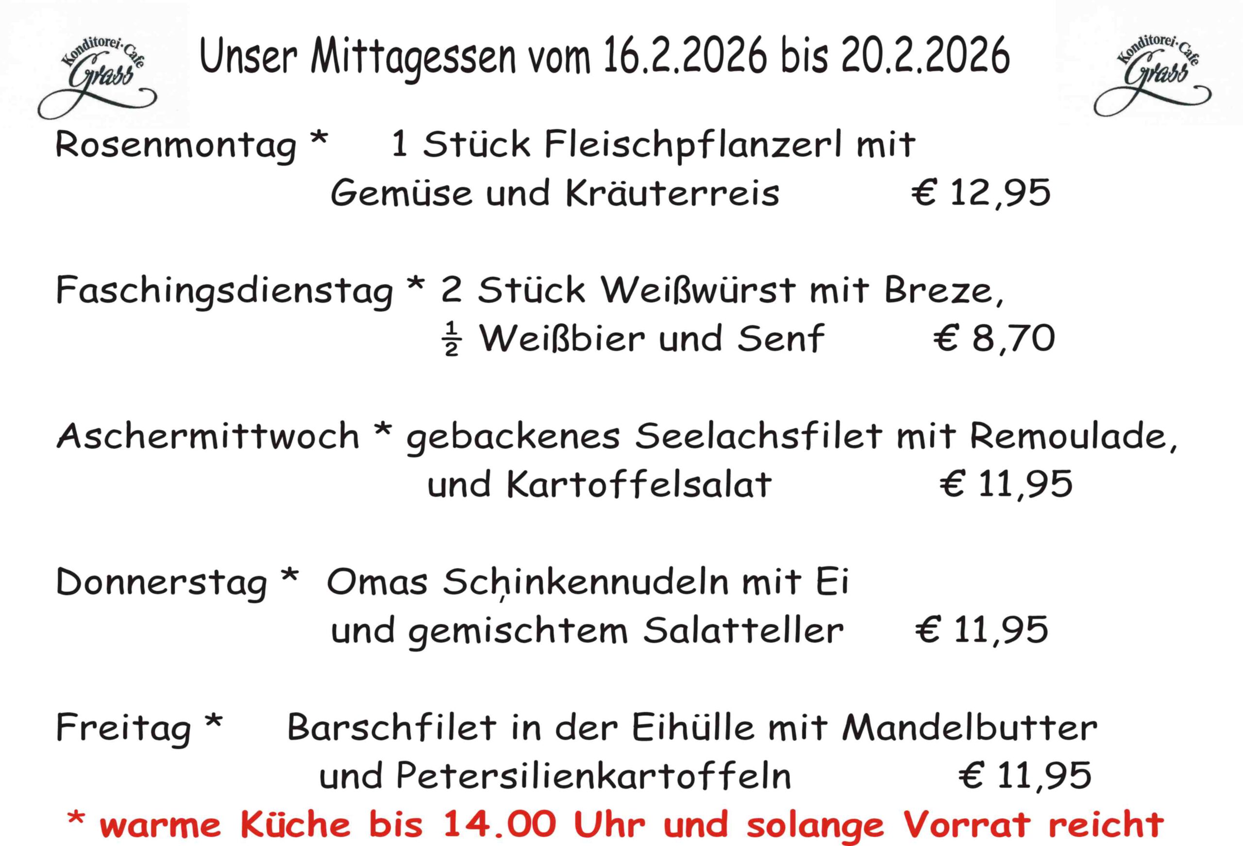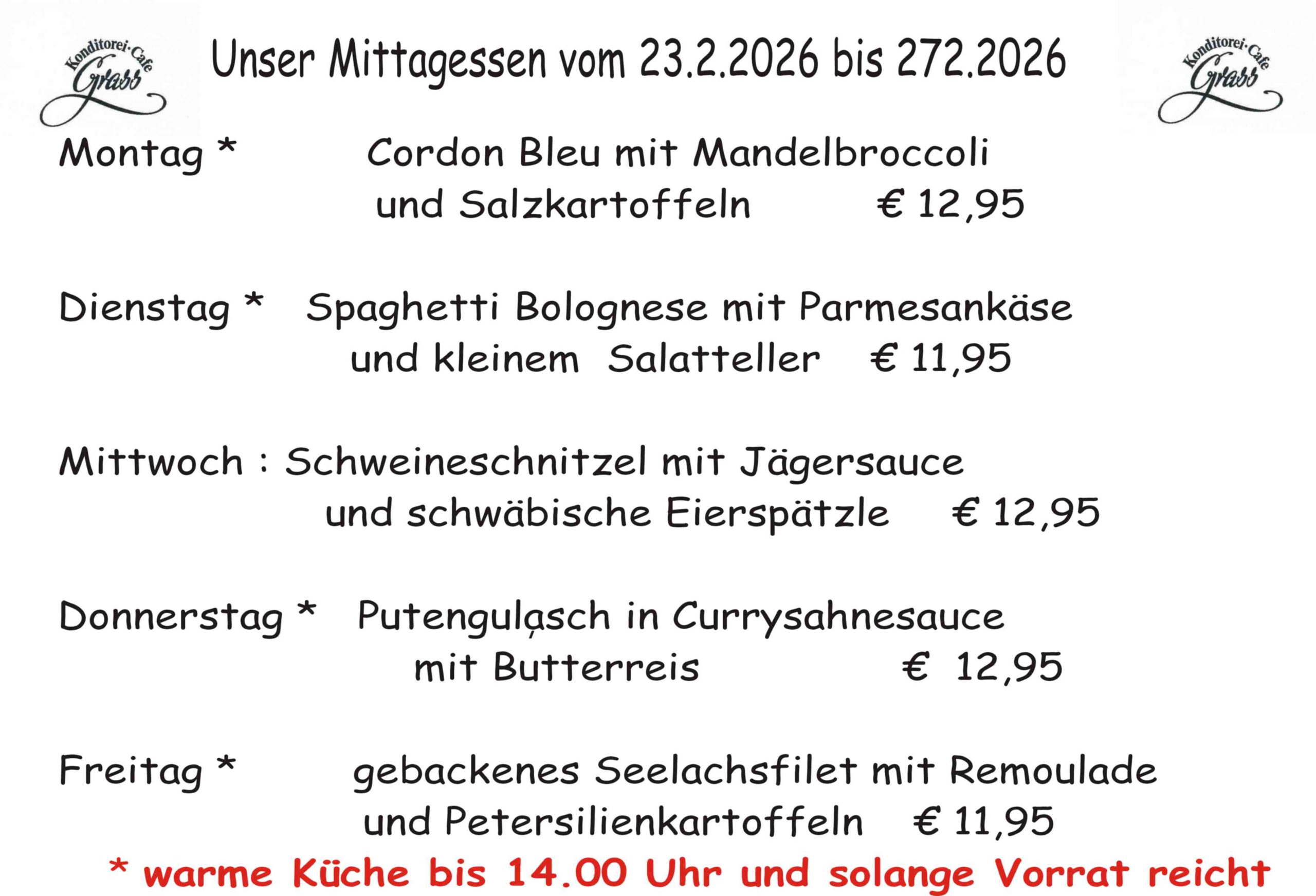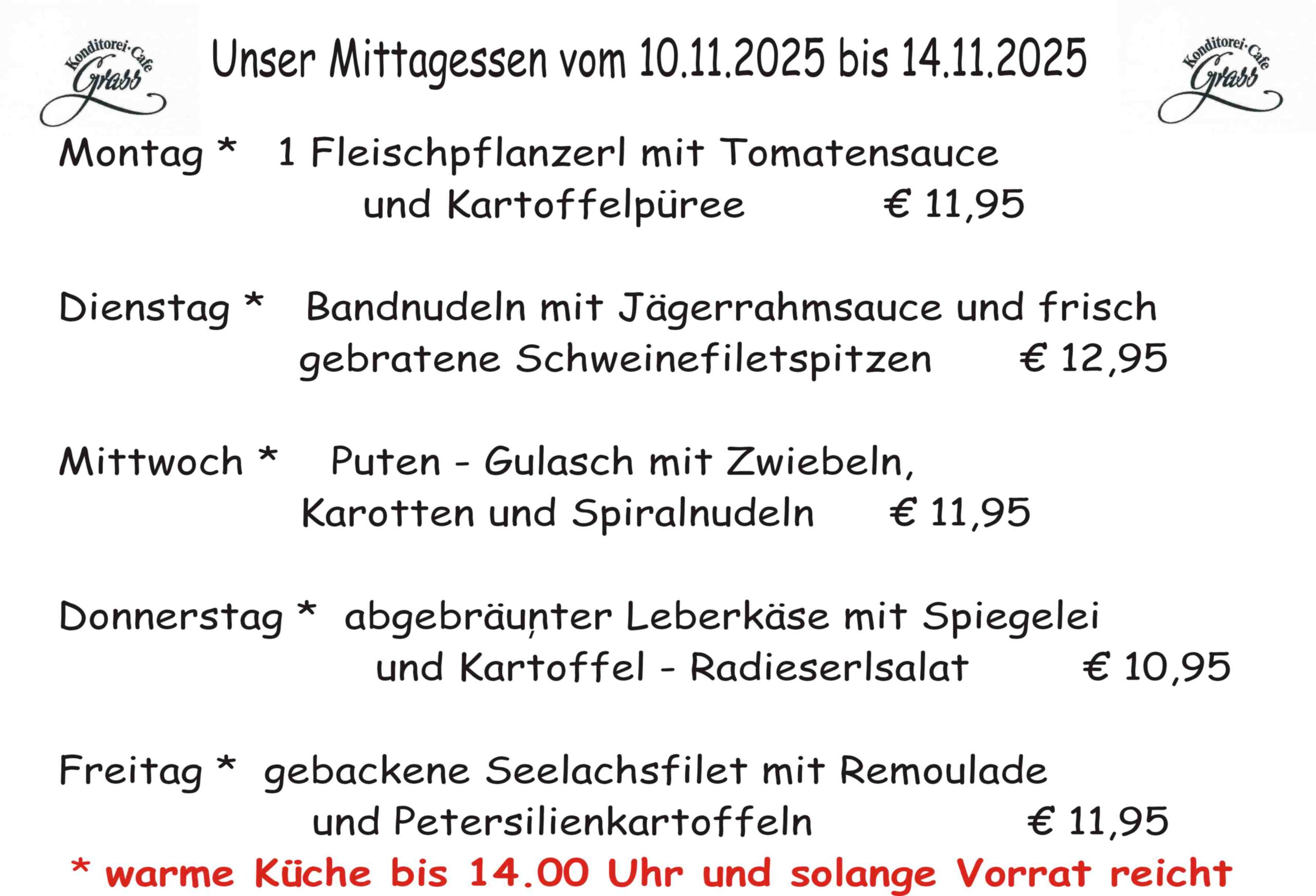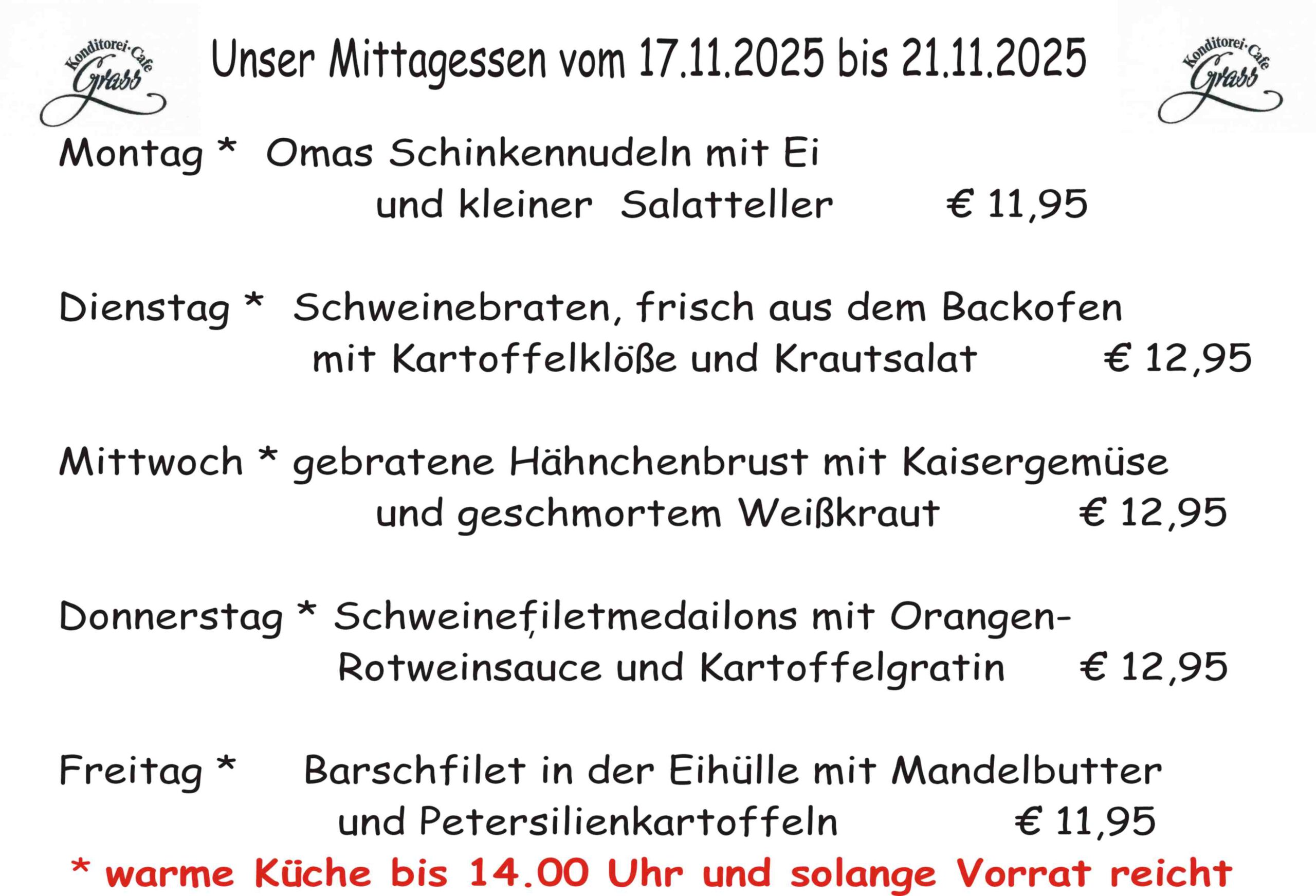 Auf unserer Tageskarte finden Sie ein täglich frisch zubereitetes Mitagessen. Natürlich darf auch eine klassische Snackkarte für den kleinen Hunger nicht fehlen. Mit einem Klick wissen Sie, was es Mittags gibt